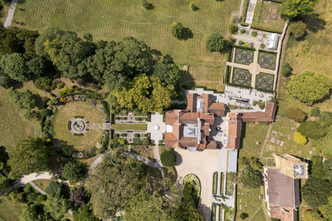 Interior:- A striking first impression is afforded by the imposing reception hall, which has a Victorian quarry-tiled floor, a lantern roof and a cantilevered staircase rising through the centre of the house. The rooms are well arranged off the reception hall, with the formal reception rooms positioned on the south-west side of the house to enjoy the finest views: the sitting room, drawing room, library and garden room all look out over the pleasingly symmetrical formal gardens. The kitchen is a modern addition completed in 2016 and incorporates elegant, white-painted cabinetry with premium Miele appliances and an expansive breakfast bar in a light-filled room perfectly appointed for family life. Adjoining the kitchen is a dining room, breakfast room, laundry and craft room, while there are further informal spaces for the family including a morning room, second craft room and a large boot room ideal for dogs. At cellar level there are useful wine stores and a boiler room. Upstairs, the six double bedrooms are arranged around a galleried landing; all bedrooms are ensuite, and the principal bedroom also has its own private balcony and dressing room.