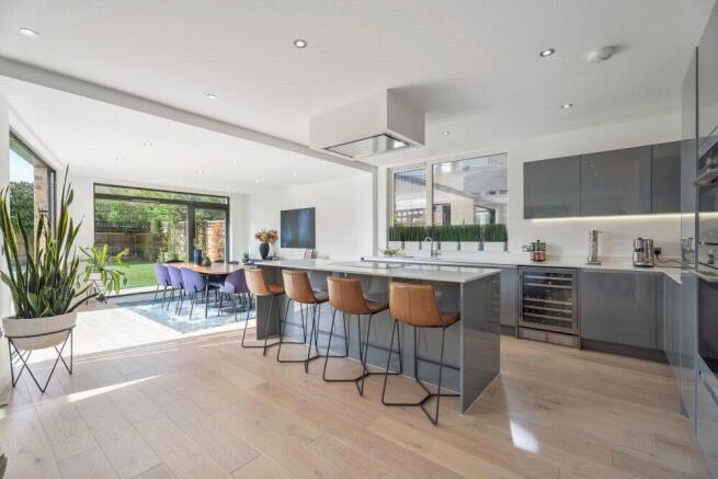 Designed with both family life and entertaining in mind, the ground floor features a spacious study, guest WC, utility room, and large garage. At the heart of the home, a superb open-plan kitchen/living area boasts floor-to-ceiling windows and bi-fold doors, seamlessly connecting the interior to the landscaped garden. The first floor offers two exceptionally large double bedrooms, one with a stylish en suite, a further double bedroom, and a luxurious family bathroom. A bright and welcoming sitting room opens onto a private south-facing balcony. Occupying the entire top floor, the principal suite includes a generous bedroom, an elegant en suite, and a dressing room. A further well-proportioned double bedroom completes the accommodation.