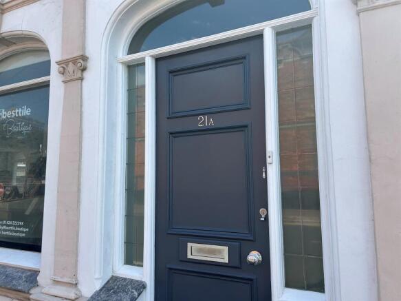 An inviting hallway, with an impressive wooden front door to the street and a similarly imposing side door, each with a window or glass surround to each side and above. Tiled floor with a radiator and high quality décor. Stairs to the first floor. The first floor landing is split level with wooden flooring and has further stairs to the second floor.