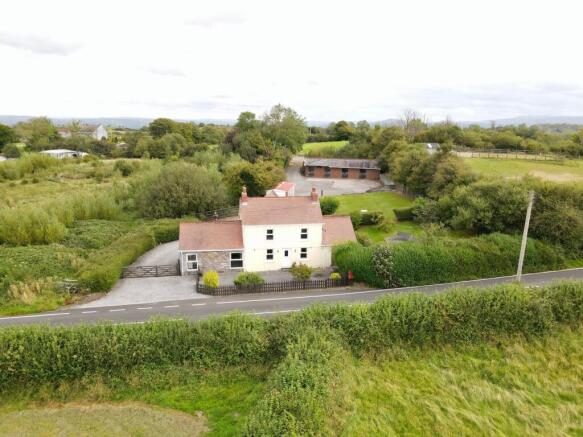 The property is approached off the highway via timber gated entrances, along a gravel driveway lane leading into the property with ample parking area for multiple vehicles to the rear and side on gravel and concreted areas, whilst the access lane continues through to the double garage, stable block and land to the rear.