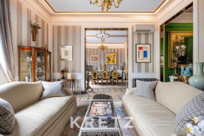 Sant Gervasi- Galvany, Barcelona. This eclectic style property of 253sq m located in a classic 1929 building, was created in the year 2024 to house an exquisite collection of art and antiques consolidated over 40 years, maintaining the original distribution, volumes and architectural elements (ceilings, hydraulic floors, wooden marquetry); it is characterised by its high ceilings with mouldings, Italian chandeliers and walls covered in french silk Jacquard in 6 rooms. 1 master suite, 1 suite, 1 double bedroom, 3 bathrooms and 1 powder room. 50 sq m south facing living/dining room with two balcony exits. Kitchen with granite worktop island, and high-end equipment (La Cornue, Subzero, Wolf, Gaggenau & Miele). Air conditioning, heating and marble fireplace. Concierge.The property is delivered fully furnished. In Avenida Diagonal on the edge of the Eixample, an exclusive area of the city, which offers luxury and comfort, with the best range of services, boutiques, restaurants and leisure facilities.