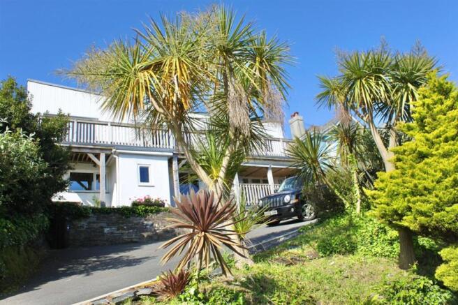 At the front of the property is a tarmac driveway with parking for several cars. Side stepped access to the rear garden with space below for the gas bottles for the range cooker and there is a side timber constructed bike store on the other side with power and water tap. Steps lead up to the front entrance door and to the potential annexe/ guest suite. Feature front planted bed with various shrubs including flax, Camellia, Hebi and various Cornish palms. There is a mature Bay and Budlea on the side boundary.