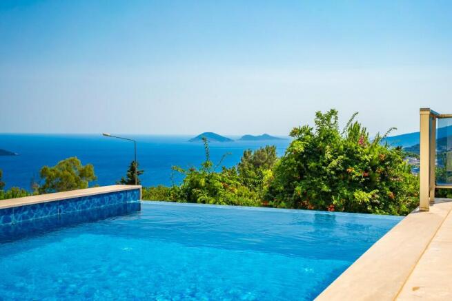 * Private pool and terrace with open views across Kalkan Bay.