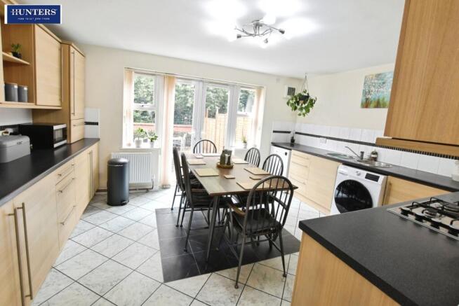 Kitchen / Diner - 3.58m x 4.41m (11'8" x 14'5") - Kitchen / diner to the ground floor of the home, with ample wall and floor units for storage. The kitchen also benefits from an integral oven, hob and extractor fan, and has double doors leading to the garden - making the space ideal for entertaining and family gatherings.