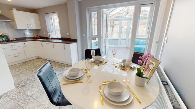 This recently built detached home is designed for easy family living. The lounge sits to the front of the property, while to the rear is a contemporary kitchen diner with white units, dark worktops and French doors opening into the conservatory. The conservatory adds flexible extra space, ideal as a second sitting room or play area. A utility room and downstairs cloakroom complete the ground floor.