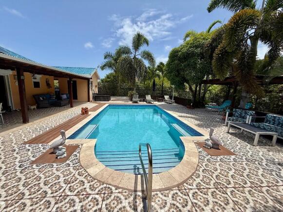 The centerpiece of the property is its large (salt) swimming pool, recently refurbished with new Diamond Brite and tiling. The expansive pool deck offers plenty of shaded areas and open lounging space, complemented by a gazebo and pergola, ideal for outdoor dining, entertaining, or simply enjoying the Antiguan lifestyle. There is also a shady covered patio giving generous outdoor lounging and dining space.