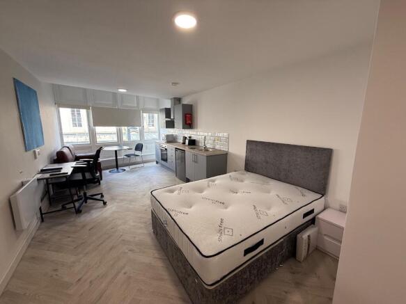 The studio is fully furnished and includes a comfortable double bed, ample storage, a dedicated study area, and a modern kitchenette with integrated appliances. The en-suite bathroom is finished to a high standard, and the layout has been thoughtfully arranged to maximise both space and comfort.