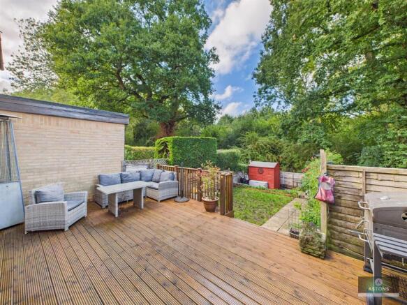 To The Rear - Tranquil space with decking area adjacent to property with outside tap and side gate access, steps leading down to lawn garden with patio path leading to shed, raised flower beds to borders, fence enclosed.