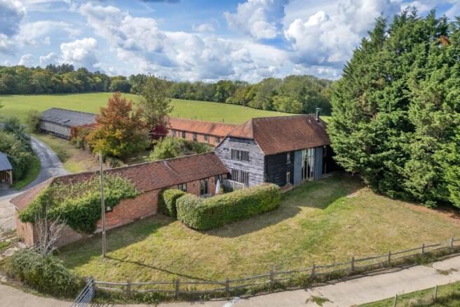acre in total, with an attractive converted four bedroom Sussex barn, two single storey cottages and a range of redundant barns with alternative