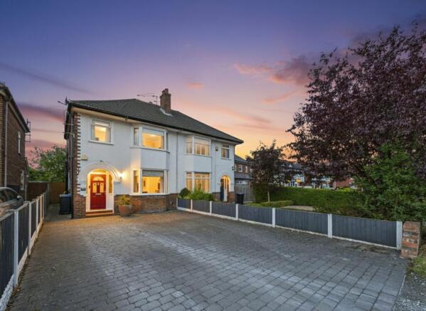 Set back from Chester Road along a charming tree-lined stretch, the home is approached via an unadopted road serving a handful of properties. To the front, a spacious private block-paved driveway provides comfortable off-road parking for four cars. Gated side access leads through to the well-enclosed rear garden, which features a raised timber decked seating terrace, a lawned area, and a paved section with a large timber shed – perfect for outdoor living and entertaining.