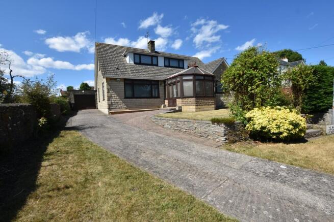The impressive frontage is entered via wooden five bar gate with an extensive driveway leading to the elevated property and garage. The driveway is bordered by lawns to each side with stone steps leading to a block paved patio and level lawn.