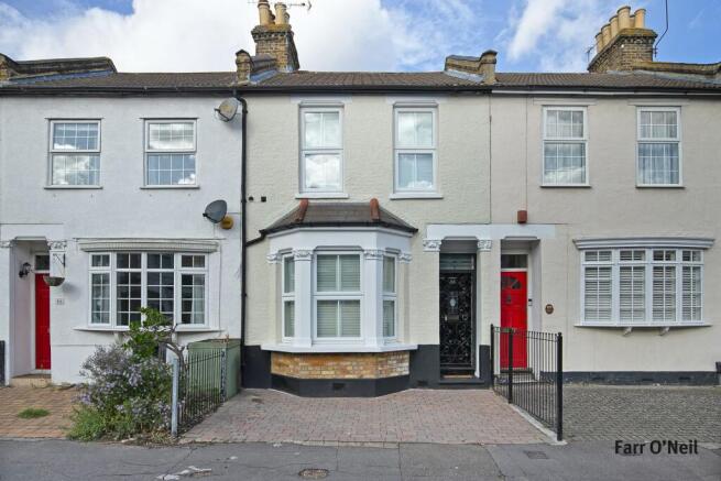 This welcoming mid-terraced property commences with a welcoming entrance hall giving access to the lounge and dining room with stairs to the first floor. The lounge is a generously proportioned reception room with high ceilings, giving a naturally light and airy feel. Features include a marble fireplace with cast iron insert, bespoke shelving and storage to the alcoves and cafe style shutters framing the traditional bay windows and there is a door to the rear garden. To the rear of the house is a separate dining/breakfast room which opens to a fitted kitchen with an extensive range of base and wall mounted units, contrasting worksurfaces and space for appliances. Upstairs are two well appointed double bedrooms and to the rear is a further bedroom / study / dressing room which gives access to a spacious family bathroom with a white suite and complementary tiling.
