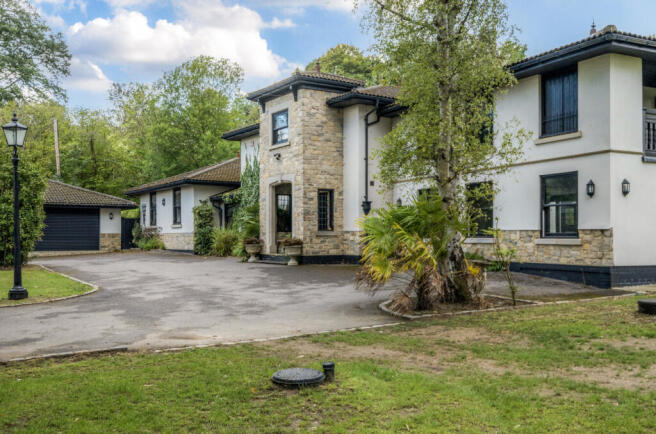 Outside, the property is approached by secure electric gates with driveway parking for several cars and provides access to the detached double garage, with electric doors. The garden stretches round all three sides of the house and is mainly laid to lawn. There is a further enclosed decked area with swimming pool.