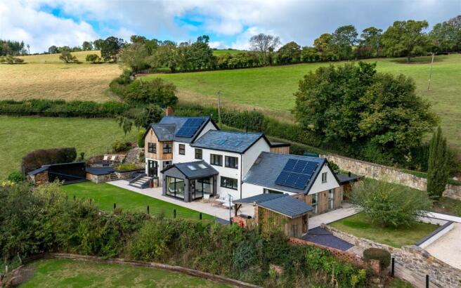 Gardens & Grounds - Trem Y Clawdd is set within approximately 0.9 acres of beautifully landscaped grounds, designed to maximise the spectacular views over Shropshire and Cheshire. Manicured lawns stretch across both the upper and lower gardens, bordered by established hedging and natural stone walls. A large tiled sun terrace wraps around the orangery, seamlessly linking the main living spaces to the outdoors. A timber-decked upper terrace offers scope for a hot tub or sauna, with electrics already in place. The lower garden features a fully serviced concrete pad, ideal for a future garden room, gym or studio. A built-in outdoor kitchen with BBQ and sink makes summer entertaining effortless. The entire setting is private, tranquil, and designed to elevate everyday life in the countryside.