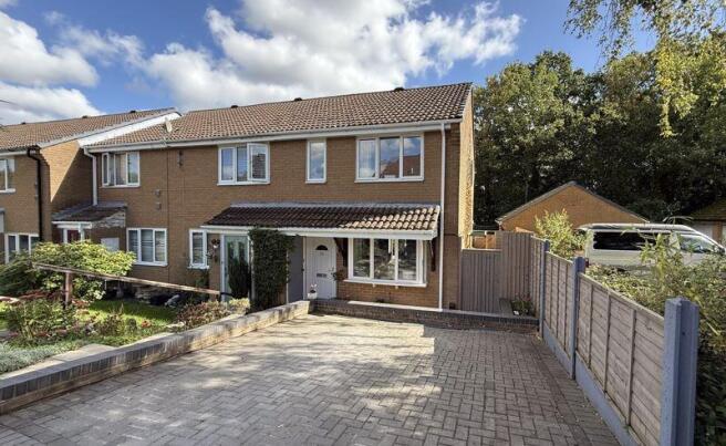 The property is situated within a quiet cul-de-sac with similar styled houses, there is driveway parking and a garage located within a block. The garage has an up and over door as well as a pitched roof for extra storage. This end-of-terrace house has a wide side access leading to the private & sunny rear garden.