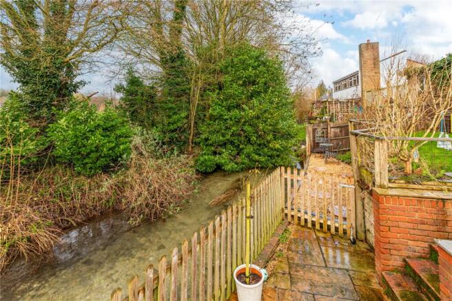 The property has a gated entrance and ample driveway parking. To the rear, a delightful south-facing garden enjoys far-reaching views, complemented by a patio area alongside the River Lambourn, where the abundant wildlife enhances the sense of peace and seclusion —an idyllic spot for al-fresco dining.