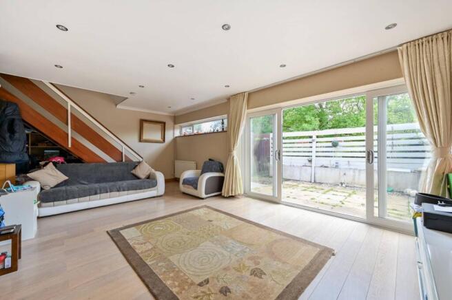 - Large reception room with sliding doors to the garden