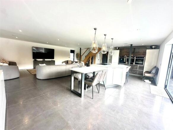 Internally there’s a fab open plan living, dining, kitchen and entertaining space. The kitchen is high end, as is the flooring, fixtures and fittings throughout. Theres a useful utility room, with access to a downstairs bedroom, plus store/laundry room and cloakroom.