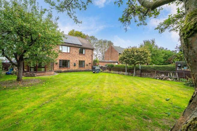 - Open frontage, well enclosed rear garden with mature trees, paved area/vegetable patch with shed