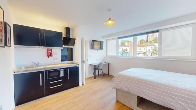 The studio offers a fully self-contained living space complete with an ensuite bathroom and a fully equipped kitchen, ensuring students have everything they need at their fingertips. Its prime location in the town centre places Tesco right next door, making grocery runs quick and hassle-free. Residents can also maintain an active lifestyle with the convenience of an onsite gym, while secure bike storage facilities provide peace of mind by protecting bicycles from potential theft or damage.