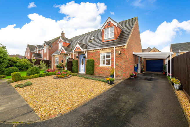 Externally, the property is approached via a driveway with covered car port, leading to a detached garage. The front garden is attractively gravelled for easy maintenance, while the beautifully presented rear garden is mainly laid to lawn, offering an appealing and private outdoor space.