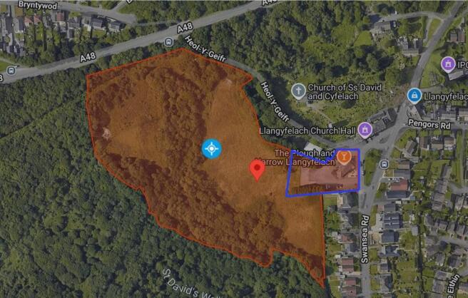 - Large parcel of grazing / woodland located adjacent to the Plough & Harrow public house near Swansea