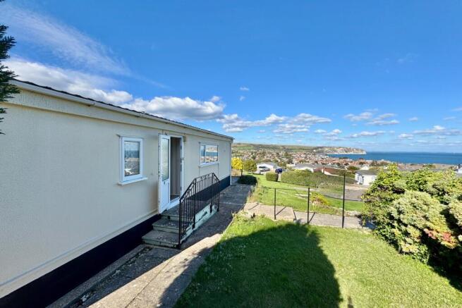 33 Hoburne Park commands fine views over the town to Swanage Bay and Ballard Down in the distance. It requires some updating but has the considerable advantage of a large paved terrace to the front enjoying the view and a dedicated parking space.