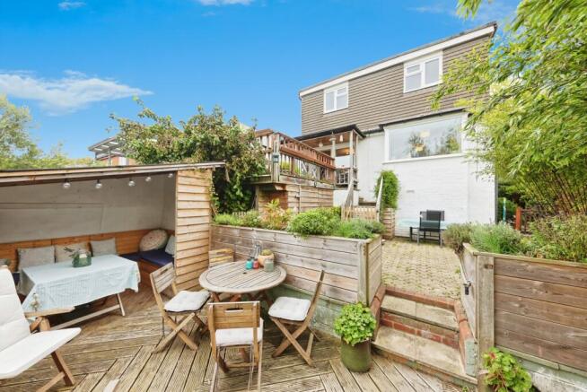 The heart of the home is a bright and airy lounge, perfect for unwinding after a long day or enjoying cozy evenings with loved ones. From here, French doors open out onto a beautiful decked area, creating a seamless transition to outdoor summer living. Overlooking the garden, it’s the perfect spot for morning coffee, alfresco dining, or evening drinks with friends.