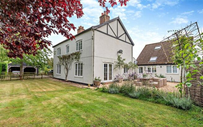 The gardens have many highlights. To the front of the house is an enclosed lawn, behind picket fencing and hedging, with a gravelled area to the west, with pleached hornbeam, beds of lavender and verbena, and willow weave fencing, creating a delightful area for afternoon and evening sun. A courtyard garden behind the house, next to the kitchen, is paved with beds of Annebelle hydrangea, and wisteria, with views out to the main gardens. These are lawned, with an area of raised beds, whilst a line of espaliered apple trees divide the lawns from the wild flower areas with mown paths, seating areas and young and mature trees creating a haven for wildlife.