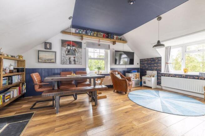 The heart of the home is a wonderful dual-aspect living room, enjoying abundant natural light, high ceilings, and picturesque views across the surrounding area. This impressive space is perfect for both relaxing and entertaining, effortlessly blending character details with a contemporary finish.