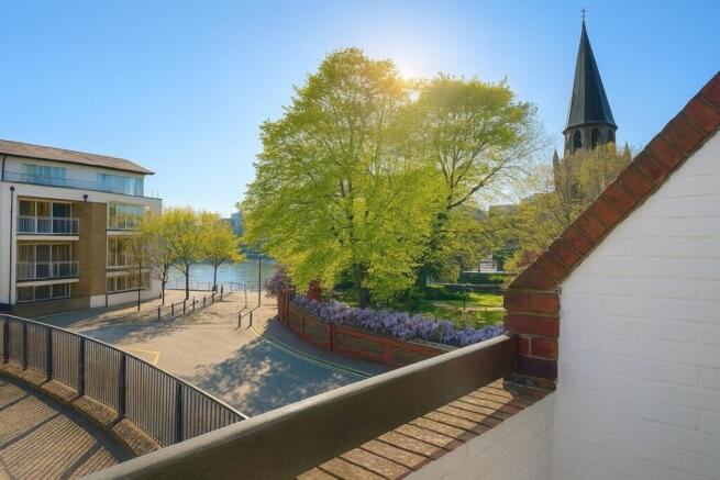 This property boasts a spacious open plan living area that's an ideal entertaining space with a modern well-equipped kitchen with plenty of cupboard and work surface space. The open-plan living room leads onto a south-west facing balcony with views of the River Thames and St Mary's Church.