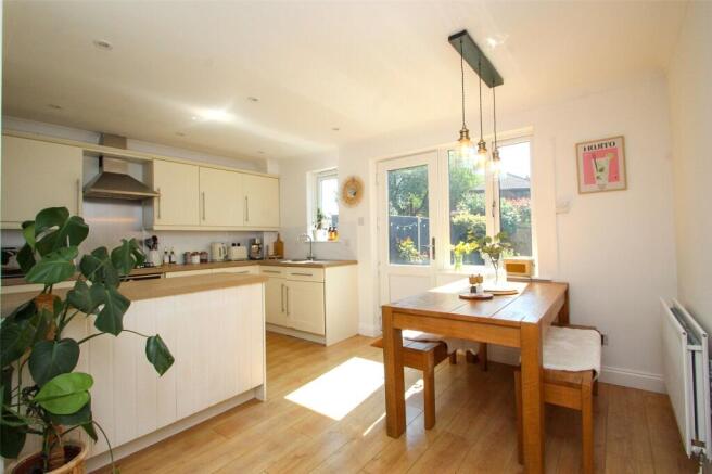 The living room is a good size to the front of the house with a connecting door to the kitchen/dining room. The kitchen/dining room is a great openplan space with the kitchen area comrising a range of cupboards and drawers with a peninsula worktop area. Integrated washing machine, space for a tall fridge/freezer and integrated dishwasher. There is a built in electric oven, gas hob, extractor fan and a further space for an appliance. The dining area has pretty views of the garden. Stairs rising to the first floor.