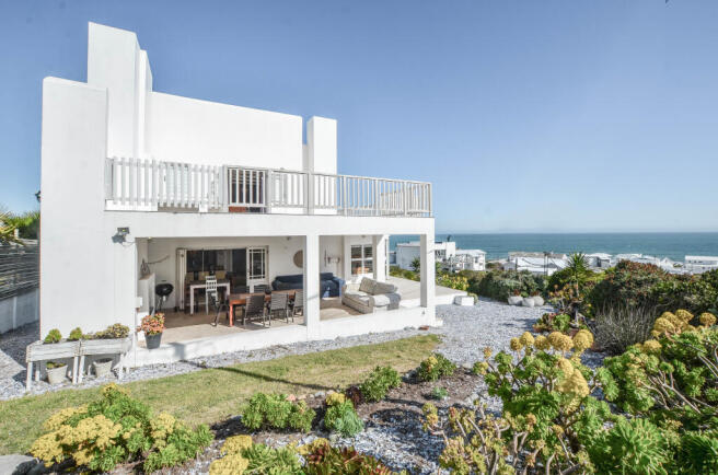 Upstairs, the master suite is a true retreat — complete with a private lounge, additional entertainment area, and games room. The space connects to a wrap-around patio with spectacular, risk-free sea views and a built-in braai, ideal for relaxed evenings or short-term letting potential.