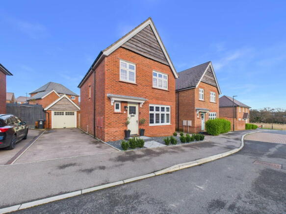 This immaculate three-bedroom detached home is set on a sought-after development, offering spacious living, a detached garage, off-road parking, and beautifully landscaped gardens. Inside, a welcoming hall leads to a bright lounge and a modern kitchen-diner with French doors opening to the rear garden. Upstairs, the principal bedroom features an en suite, with two further bedrooms served by a stylish family bathroom. The enclosed garden provides a private, low-maintenance outdoor space, the perfect complement to this modern and beautifully presented home.
