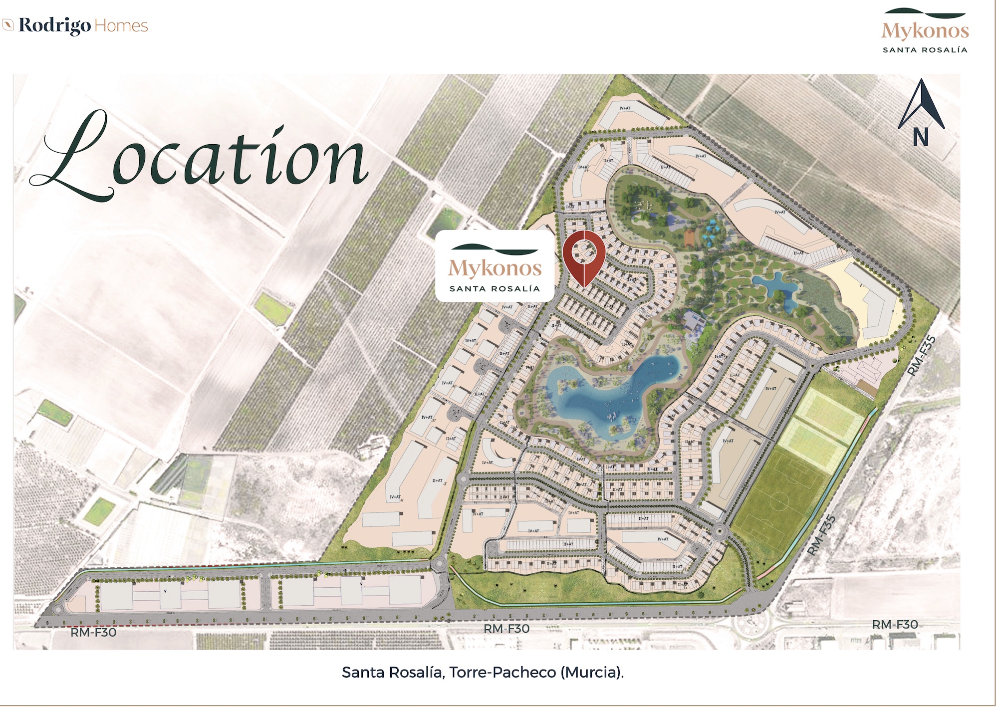 Centrally located within the Santa Rosalia Lake and Life Resort. The resort is a new residential and leisure complex for the whole family in true Mediterranean style. It’s located on the coast of the Murcia region on the Costa Cálida, just 4 km from the sea and the popular town of Los Alcázares. The nearest neighbor is the well-known Mar Menor Golf Resort.