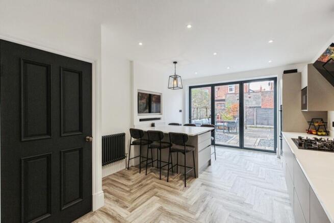 The ground floor offers bright and welcoming living spaces, enhanced by natural light and a well-balanced layout that suits both everyday living and entertaining. At the heart of the home is a beautifully finished modern Wren kitchen, fitted with high-end Neff appliances and complemented by a convenient instant hot water tap — combining both style and practicality