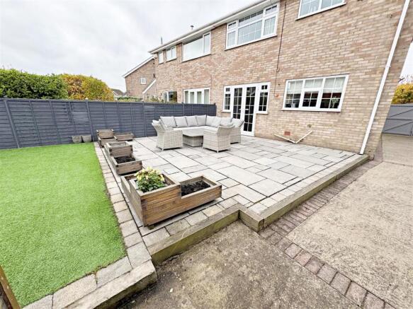 The rear garden has a fenced boundary and is laid to artificial grass and there is a large patio area. A timber shed with light and power and there is power at the bottom of the garden.