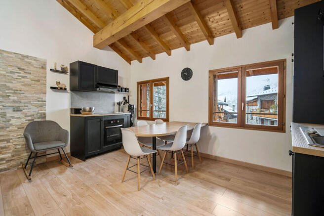 - Open-plan kitchen with dining area and living room