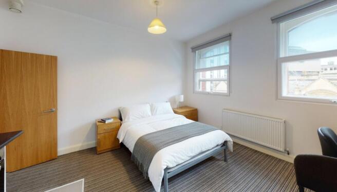 The studio features a TV, double bed, dining table and comfortable seating, creating a practical and welcoming space to study and relax. The MODERN kitchen includes a fridge/freezer, oven and hobs, while the bathroom offers a shower cubicle and WC.