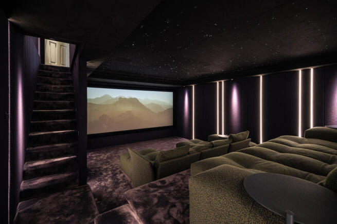 The lower ground floor has been transformed into a state-of-the-art cinema room, acoustically treated and designed by Cyberhomes, featuring an award-winning Artcoustic sound installation. It’s an exceptional and rare use of basement space, ideal for immersive movie nights or family gatherings.