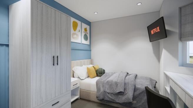 * Good Size Double Bedroom with Bed, Desk, Wardrobe, Drawers & Smart TV