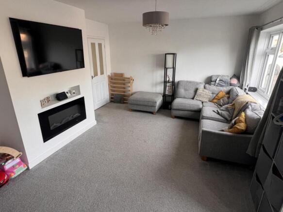Generous and spacious living room with stairs leading to the 1st floor accommodation, carpet flooring. Electric fire display and double doors leading to the kitchen-diner. Window to the front elevation.