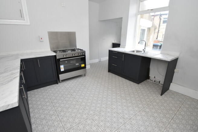 BREAKFASTING KITCHEN 12' 2" x 13' 5" (maximum) (3.72m x 4.09m) Refitted with a range of Shaker style wall and base units with soft closing drawers with contrasting laminate worktops and upstands. Free-standing gas cooking range with stainless steel splash-back, stainless steel sink with mixer tap, plumbed for washing machine, space for a free-standing fridge/freezer, tiled floor, single radiator, under-stair storage cupboard, additional over-head cupboard to alcove, uPVC double glazed windows and a door leading to the rear hallway.