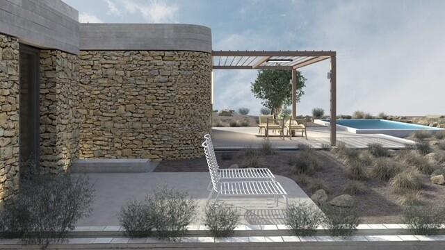In the outdoor area there is a manicured garden and a private infinity pool, while the property provides beautiful views towards Antiparos island and the sea.