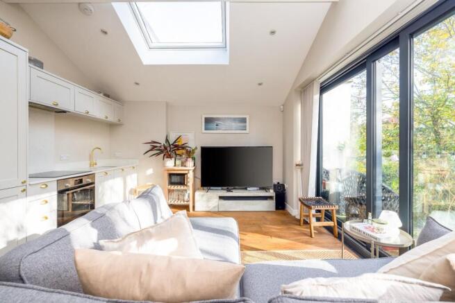 Tucked away at the rear of a converted Chapel on the Cotham/Redland borders, a stylish and light five year old one bedroom house with large South Facing balcony. The property is found down a gated pathway and entered on the first floor, which is a super open plan living area with high vaulted ceilings complemented by two remotely controlled Velux windows, full width bifold doors opening onto the balcony, beautiful engineered Oak flooring and a high spec kitchen. A truly exceptional space. Downstairs there's a large bedroom with three built in wardrobes and access to a pathway leading onto Hampton Road. The chic bathroom has a four piece suite and heated marble floor and there are further storage options as well as a utility cupboard housing the washing machine off the hallway. An excellent turn key home in an always popular spot in North Bristol.