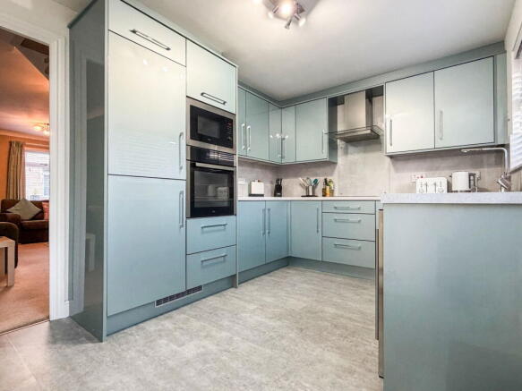 - Modern kitchen/diner in a delightful teal blue, perfect for everyday living and entertaining.