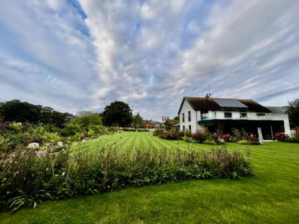 Set within approximately 3 acres of beautifully landscaped gardens and established woodland, this exceptional property offers an idyllic blend of formal design, natural beauty, and modern sustainability.