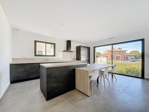 The fully equipped open-plan kitchen (built-in oven, induction hob, dishwasher, large central island) invites you to share good times with family or friends.