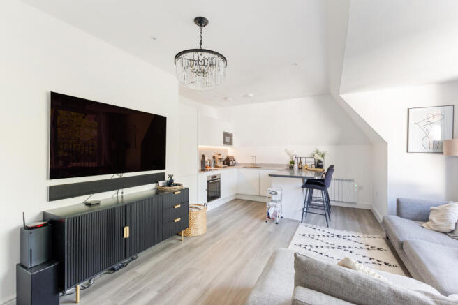 This inviting area seamlessly incorporates a bespoke fitted kitchen, complete with high quality integrated appliances, stylish cabinetry and work surfaces designed to provide a thoughtful layout ideal for modern living.