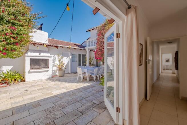 Large stacking doors lead out to a serene courtyard that feels straight out of the Mamma Mia movie — sun-drenched, calming, and full of Mediterranean character. It’s the perfect setting for slow mornings with coffee, laid-back lunches, or dinners under a canopy of stars.